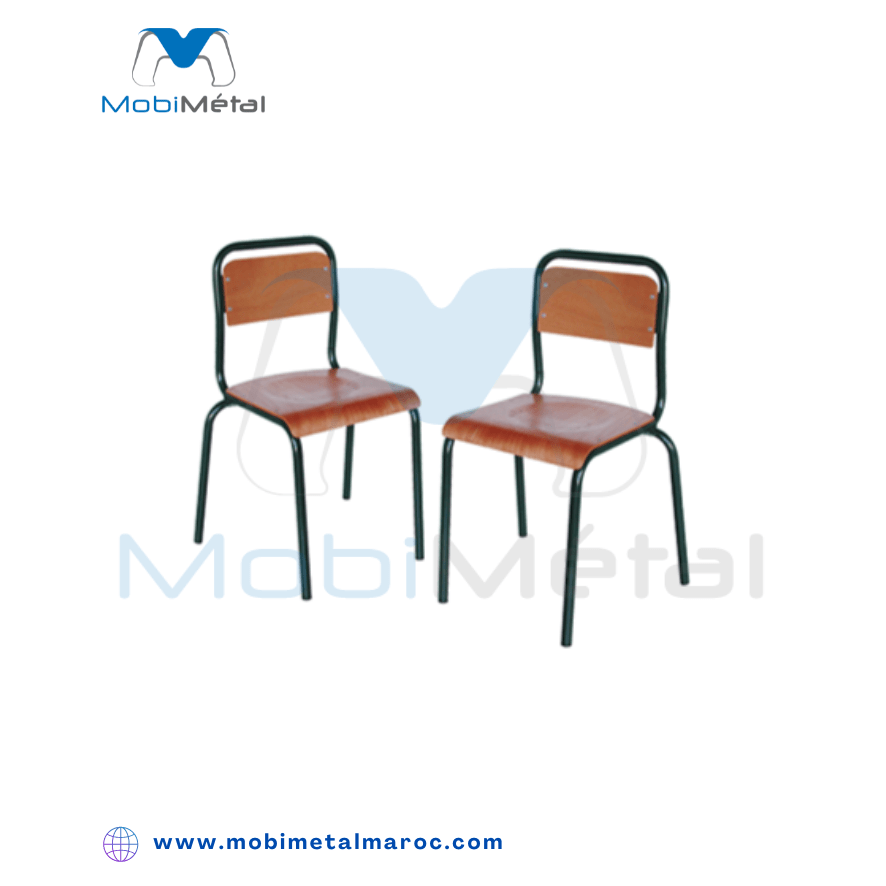 Chaise Caniche à structure renforcée Structure métallique en tube cylindrique 25 mm de diamètre, épaisseur 1,5, revêtu Epoxy, couleurs au choix suivant nuancier. Siège et dossier encastrés, en contreplaqué, vernis ou lamifiés.